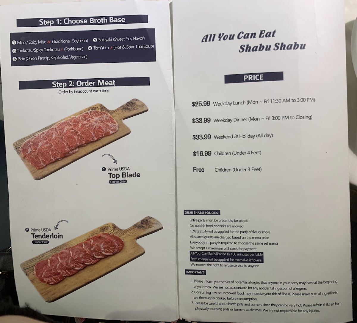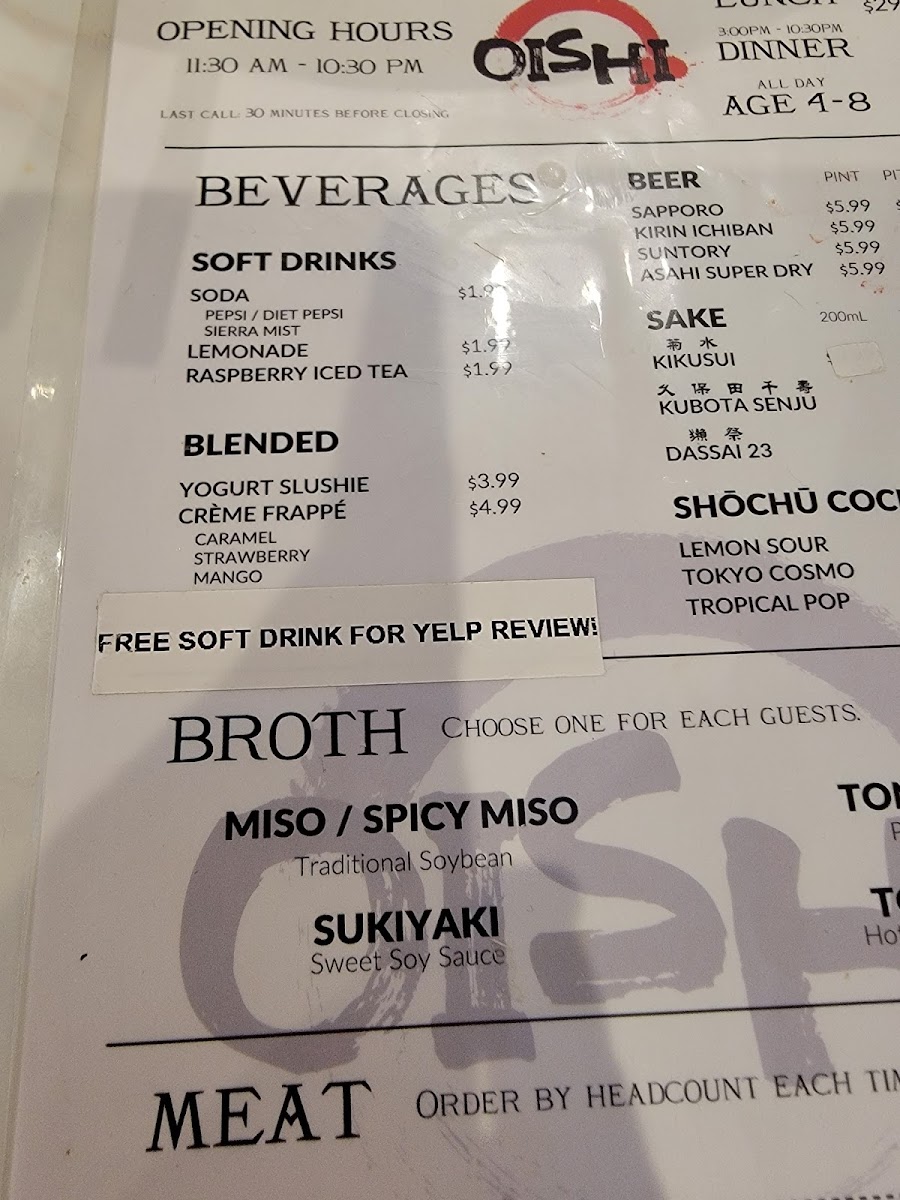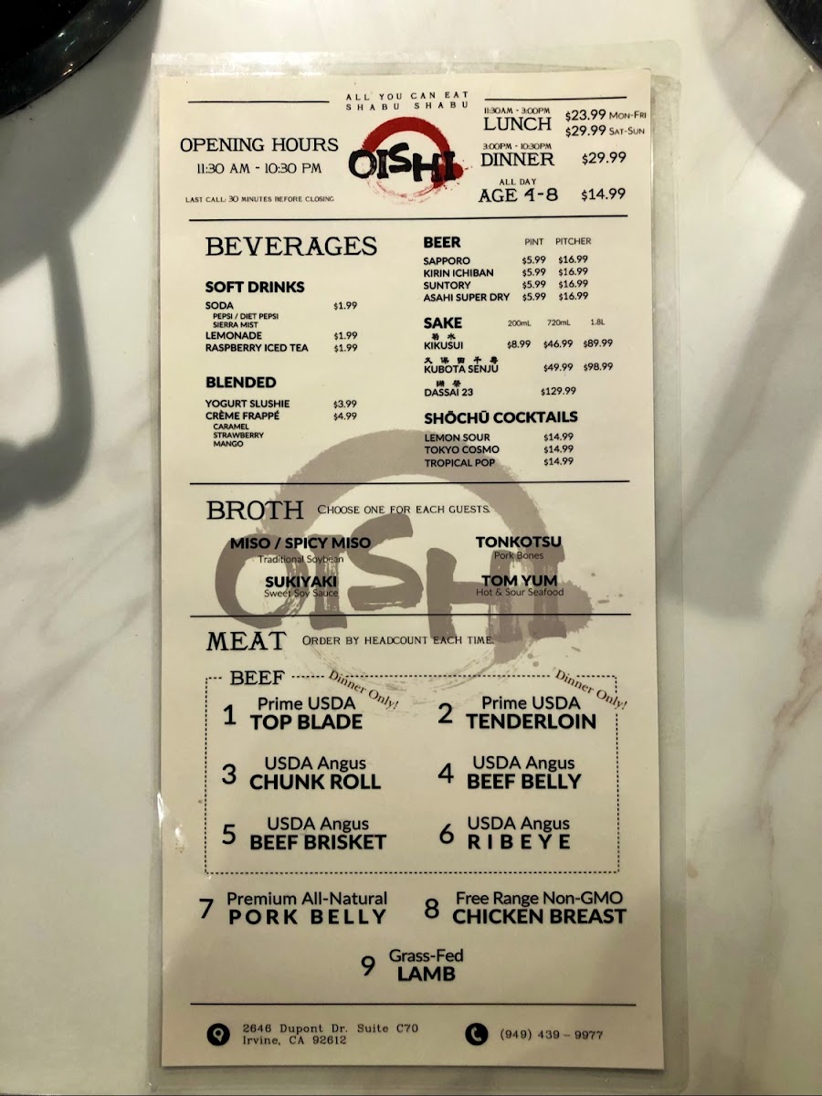 Oishi Shabu Shabu Menu